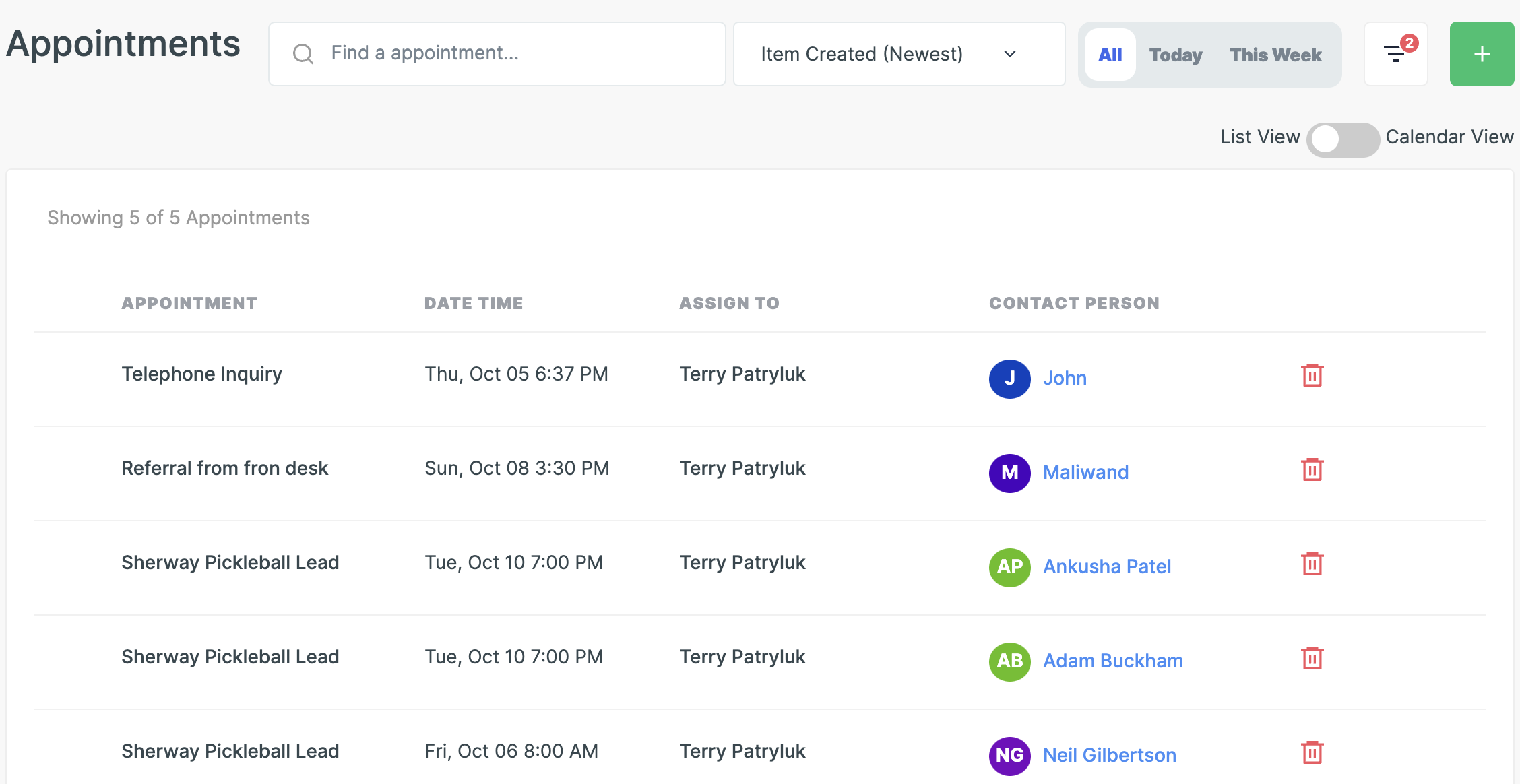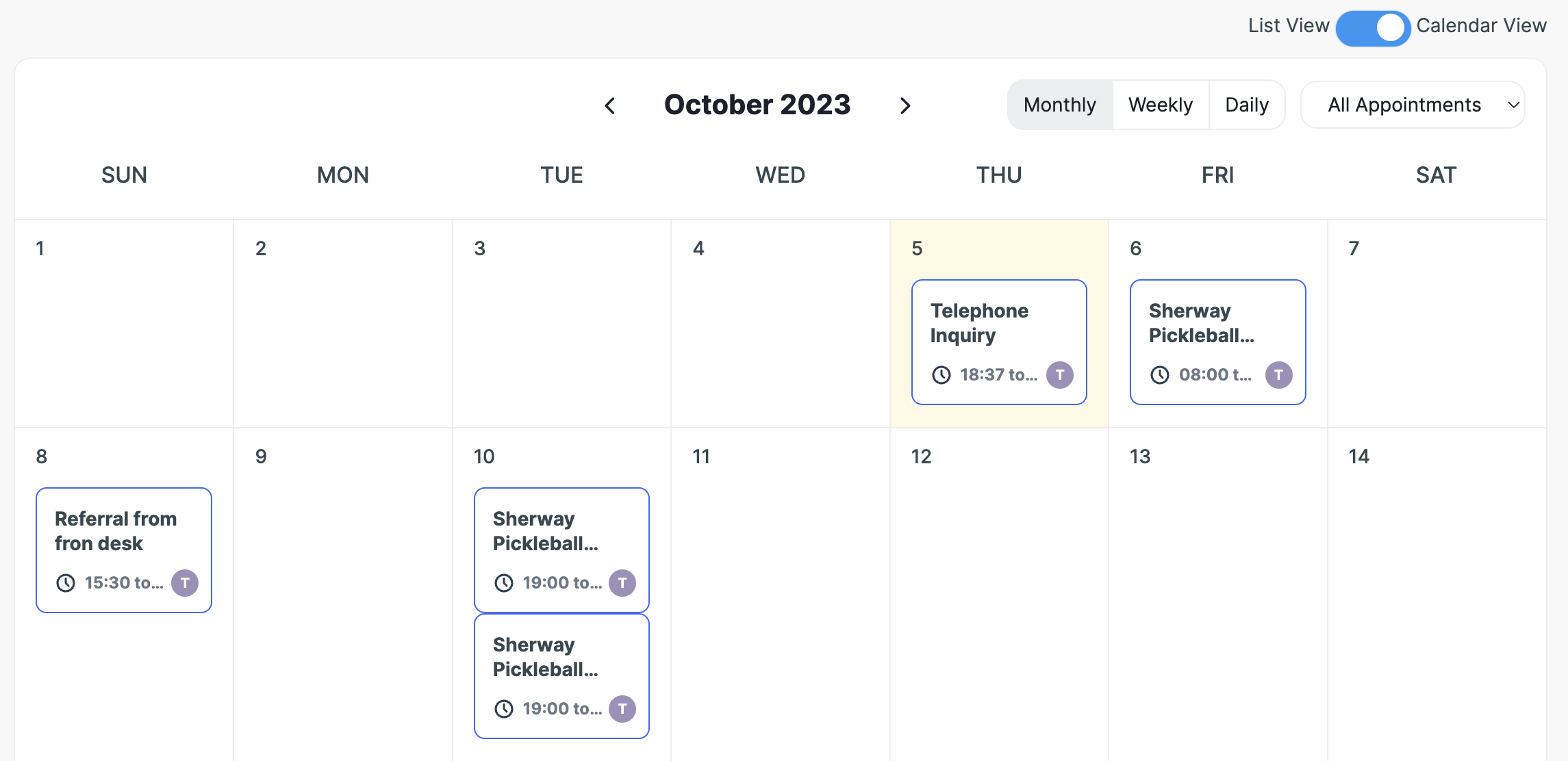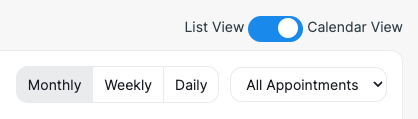 You can also view your appointments in Calendar View by switching the toggle to 'Calendar View' in the top right beneath the green +.
