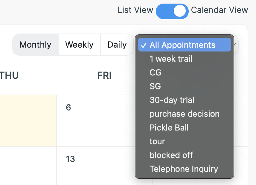 Step 2: Click the 'Appointment View' drop down menu on the top-right.