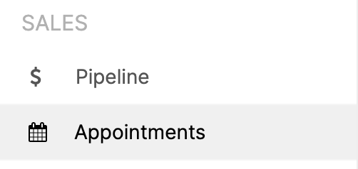 On the left-hand menu, below Pipeline in the Sales section, you will find an area to create and manage appointments as they are assigned to your team.