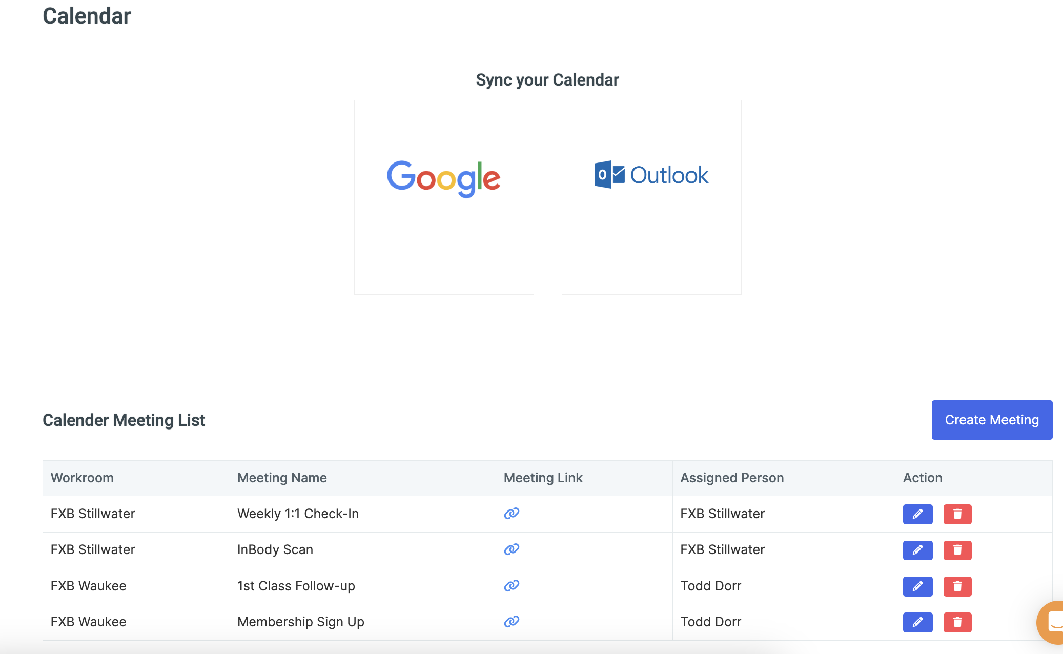 Once you’ve created each meeting, you’ll see them on the ‘Calendar’ page.