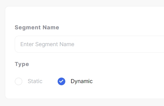 Step 3: Enter a segment name, and then indicate if the segment is Static or Dynamic. A static segment will not change size, while a dynamic segment will change size based on the criteria set.