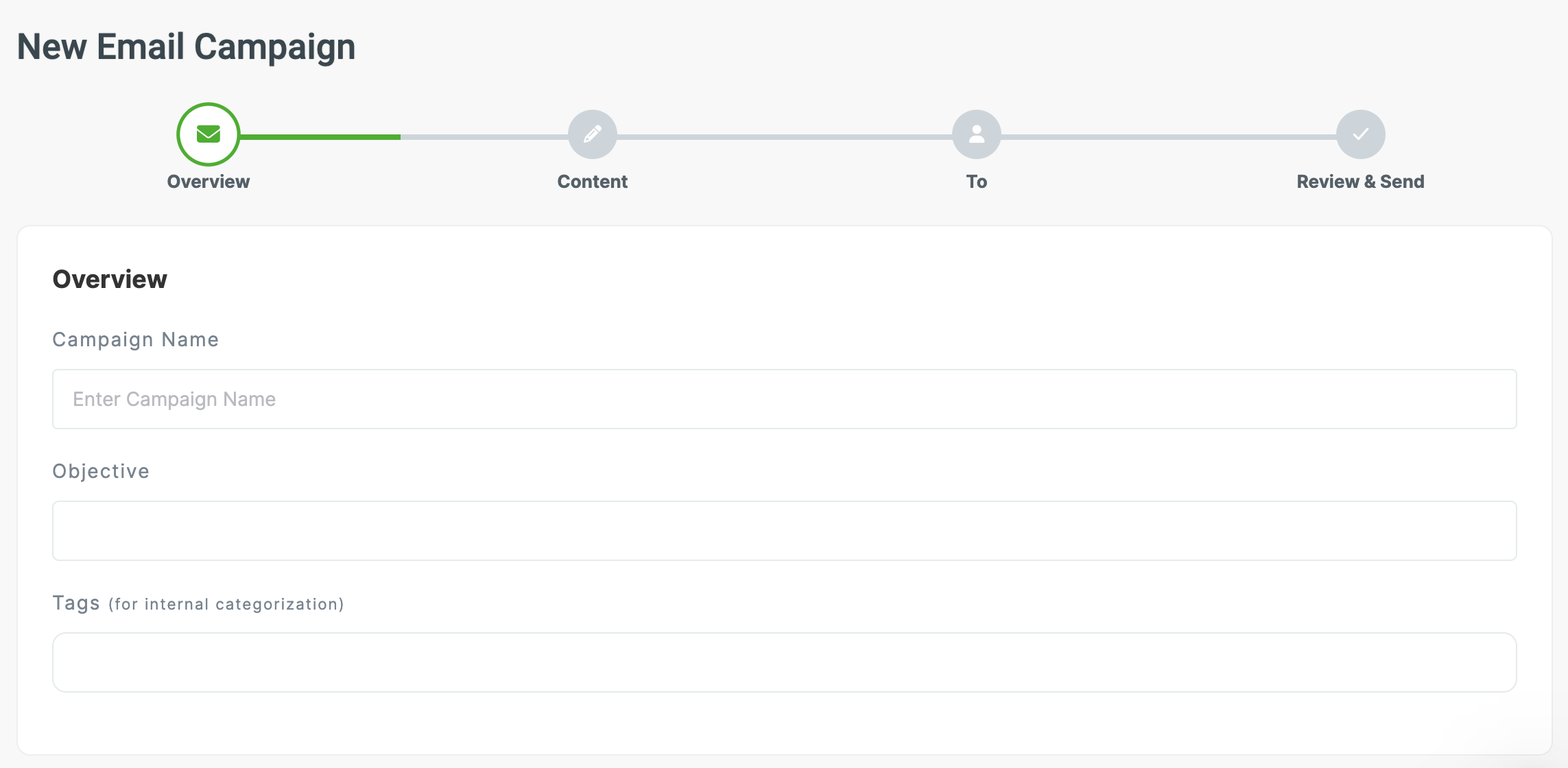 2b: Tags: This is optional and for internal use to organize your campaigns. End-users will not see tags.