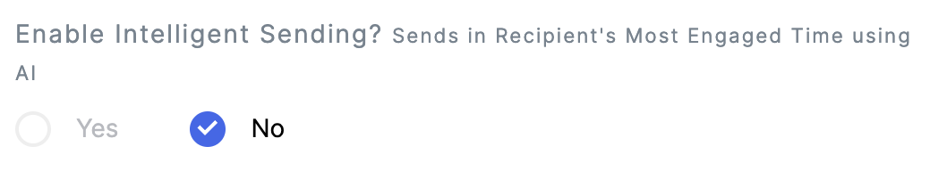 5d: Intelligent Sending (AI): This option may override the above preferences, based on the user's most engaged time. For example, if the recipient has historically opened their emails around 2:00 pm, their campaign will send at that time.