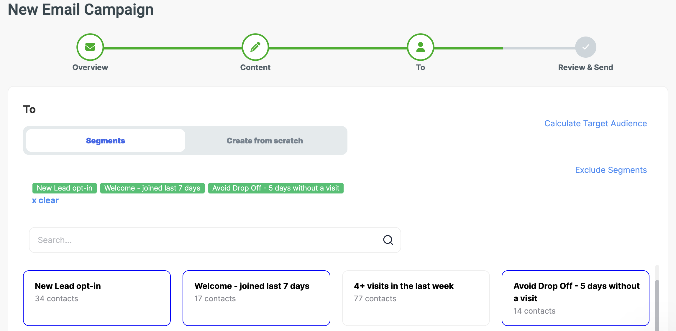 Segment exclusion is also an option in this section by clicking 'Exclude Segments' on the right.